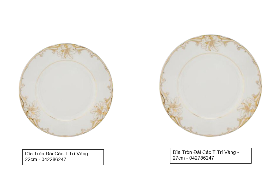 Bộ sản phẩm Đài các toát lên vẻ đẹp kiêu sa, lộng lẫy theo phong cách quyền quý hoàng gia. Bộ sản phẩm có kiểu dáng sang trọng, nhiều đường nét được cách điệu, uốn lượn với dáng điệu mềm mại, mảnh mai. Hoa văn được nhấn nhá bằng những đường viền óng ánh vô cùng đẹp mắt, , càng tôn lên vẻ đẹp đẳng cấp của không gian ẩm thực cũng như phong cách thẩm mỹ của chủ sở hữu.