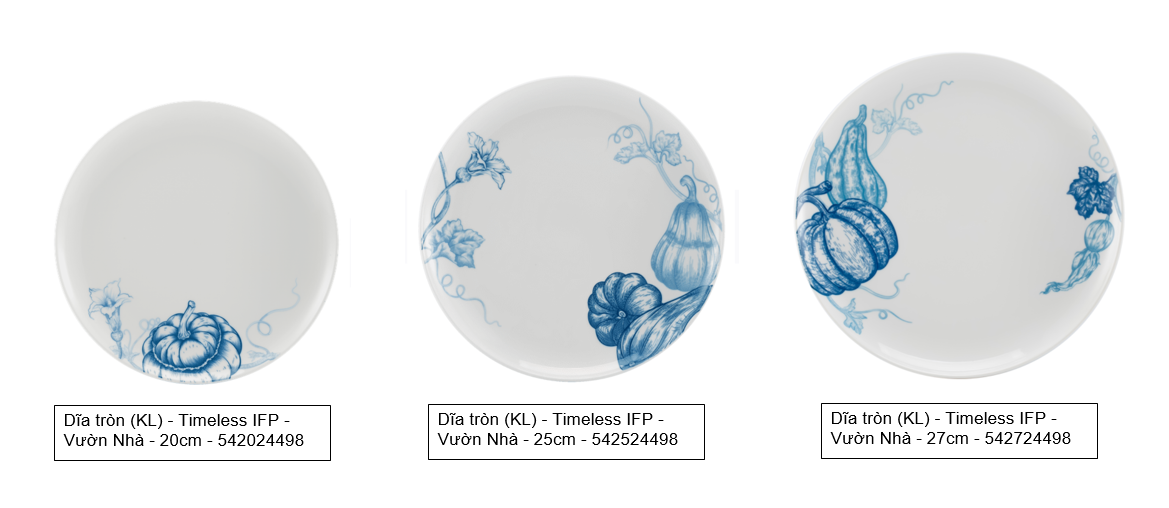 Trên nền sứ trắng thanh khiết, hình ảnh những quả bí ngô to tròn, những bông hoa đang bung nở được phác họa một cách chân thực, tinh tế. Khéo léo chọn màu xanh cobalt để tô vẽ lên sứ trắng là cách những nghệ nhân Minh Long tạo điểm nhấn khác biệt và mang đến sự đột phá mới lạ, độc đáo cho bộ sản phẩm. Sự phối màu hài hòa giữa sắc xanh cobalt trang nhã, thanh lịch trên nền sứ trắng thanh khiết, tươi mát tạo nên bức tranh mang vẻ đẹp tinh tế, đầy hồn sắc và thanh bình.