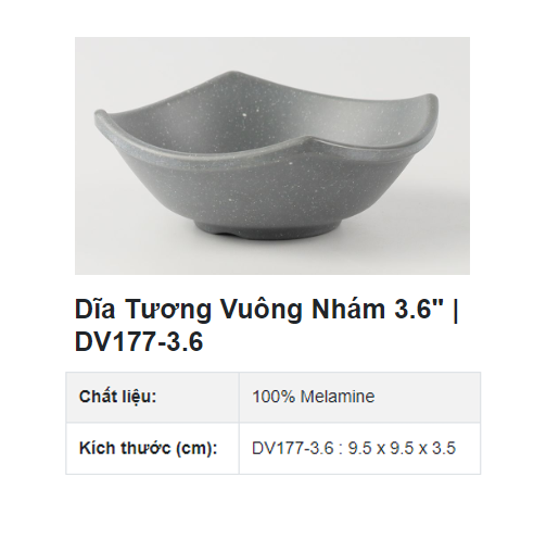 Sản phẩm có bề mặt nhám, hạn chế trầy xước. Dùng để đựng nước chấm các loại.