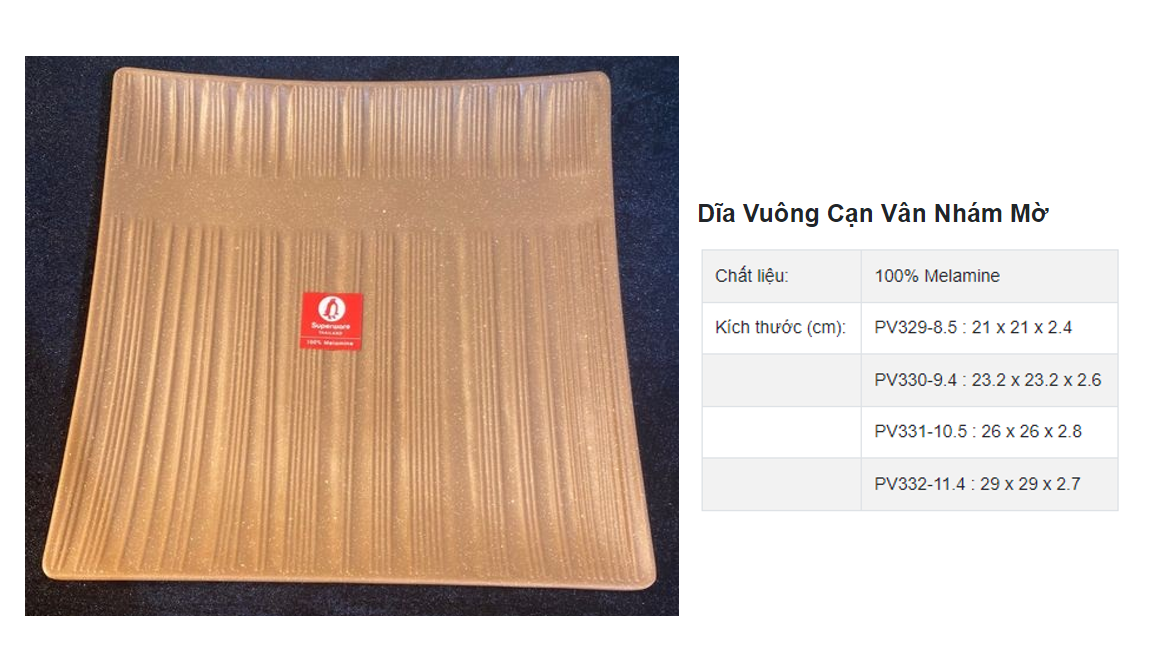 | PV329-8.5 CDB | Dài: 21cm - Rộng: 21cm - Cao: 2.4cm |