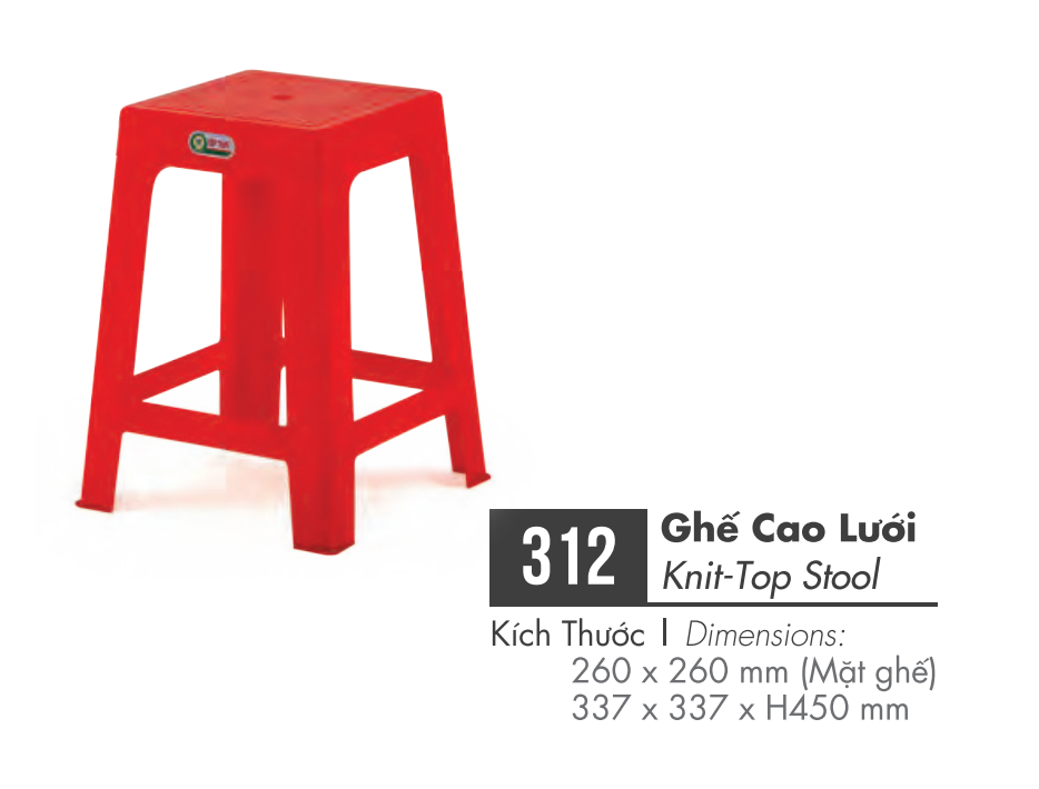 Ghế cao lưới 337*337*450 mm Hiệp Thành 312 HI được làm từ 100% nhựa PP nguyên chất nên rất bền, cứng cáp, chịu được va đập mạnh và chịu lực tác dụng tốt, đảm bảo thời gian sử dụng dài lâu.