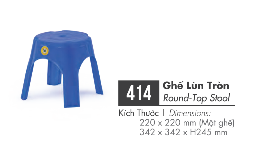 Ghế lùn tròn 342*342*245 mm Hiệp Thành 414 HI là một loại ghế tiện lợi, giúp việc ngồi thấp dễ dàng hơn thay cho việc ngồi xổm dây tổn hại đến xương khớp.