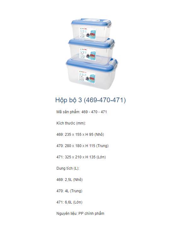 Hộp quai cài bộ3 (469-470-471) - Hiệp Thành HB3-1 được làm bằng chất liệu nhựa PP dày dặn, bền đẹp, đồng thời không chứa các chất BPA gây hại, đảm bảo an toàn cho sức khỏe người dùng.