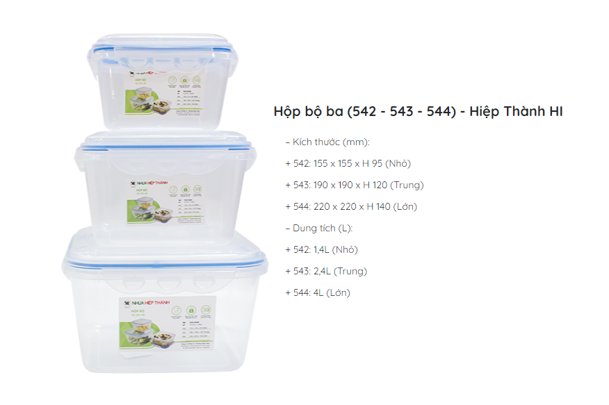 Hộp bộ ba (542 - 543 - 544) - Hiệp Thành HI được làm bằng chất liệu nhựa PP dày dặn, bền đẹp, đồng thời không chứa các chất BPA gây hại, đảm bảo an toàn cho sức khỏe người dùng.