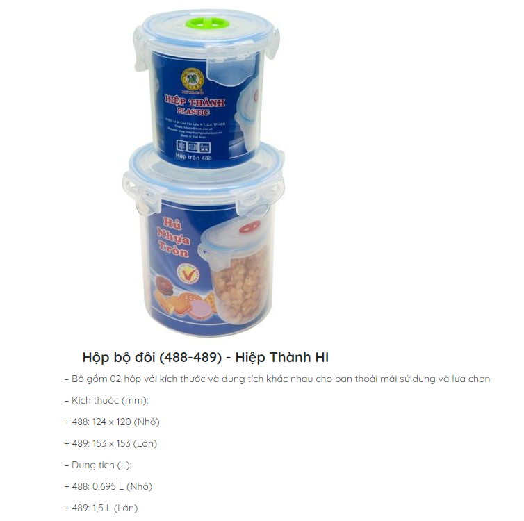 Hộp bộ đôi (488-489) - Hiệp Thành HI là sản phẩm hộp giúp việc lưu trữ thực phẩm được lâu hơn mà thực phẩm vẫn tươi ngon.