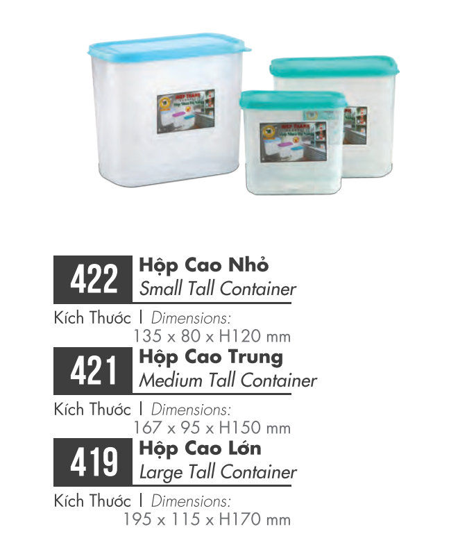 • Hộp nhựa được thiết kế tiện lợi và thông minh với nhiều kích thước lớn nhỏ khác nhau: hình trụ, hình chữ nhật, hình vuông,…