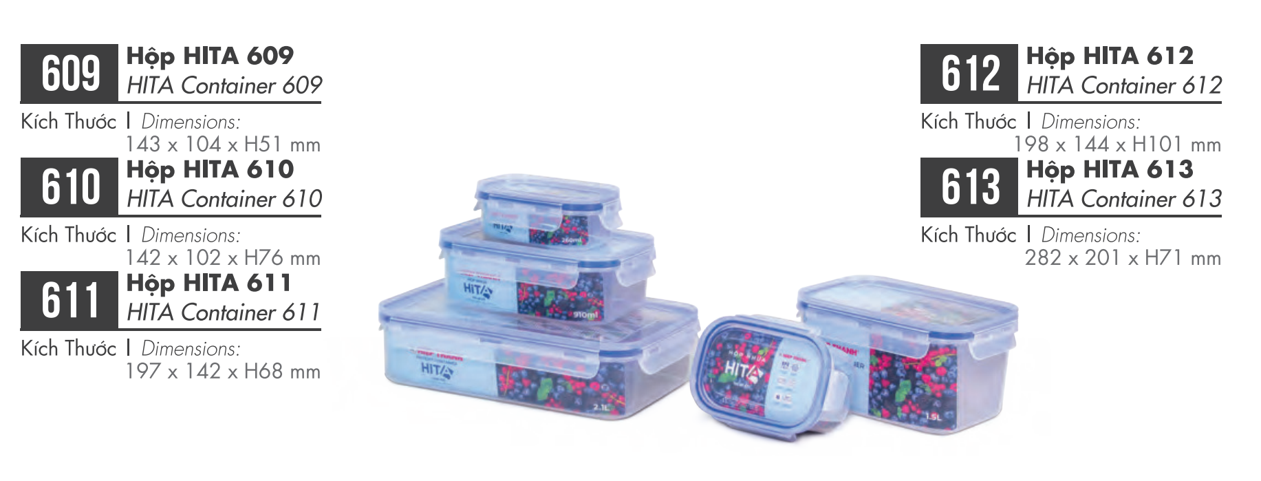 Hộp Nhựa Hita Mã: 609 - 610 - 611 - 612 - 613