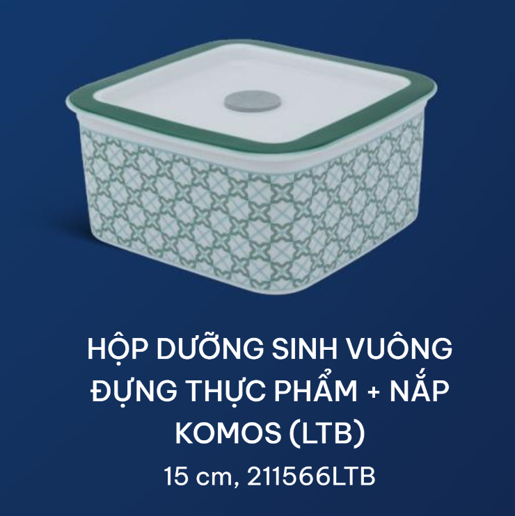 Hộp dưỡng sinh vuông đựng thực phẩm 15cm – hoa văn Lập thể Komos (LTB)