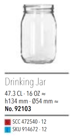 | LIB 92103 | ØĐáy: 6.4cm - ØMiệng: 6.7cm - 488ml - Cao: 13.3cm - 12Cái/Thùng |