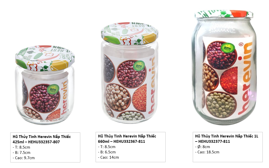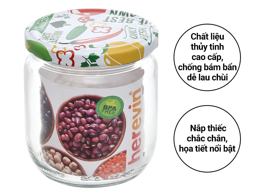 - Màu sắc: Trong suốt Hũ đựng thực phẩm thuỷ tinh nắp thiếc Herevin chất liệu thủy tinh trong suốt, sạch sẽ, bền đẹp và an toàn.