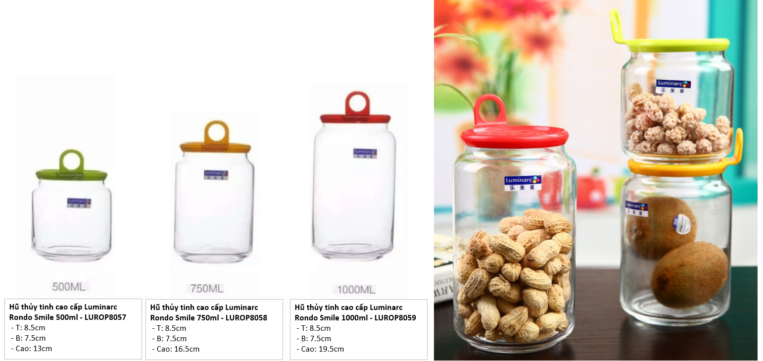 Hủ thủy tinh tiện ích Với thiết kế gọn nhẹ, bạn có thể sử dụng hũ đựng gia vị, bánh mứt, kẹo, các loại hạt, hoặc có thể dùng chứa thực phẩm giữ lạnh trong tủ lạnh.