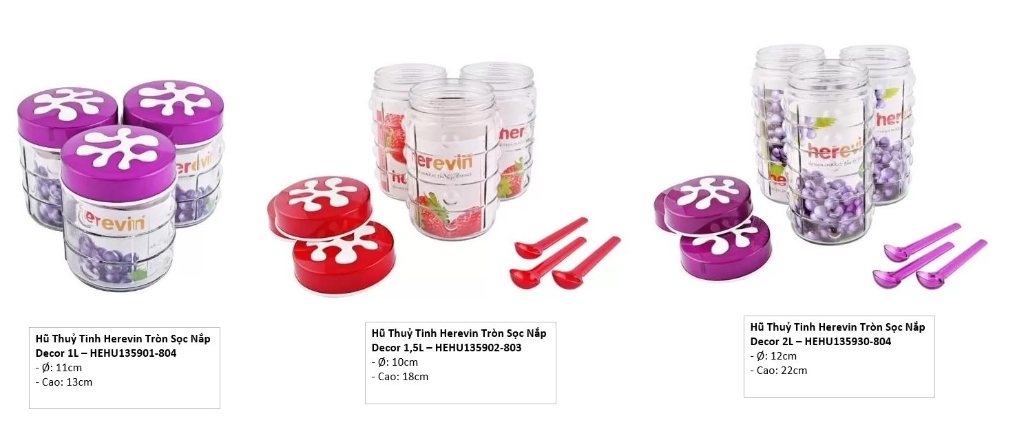 Hũ thủy tinh Herevin Decor, giúp chứa đựng được gia vị. Sản phẩm còn có nhiều màu sắc khác nhau để người dùng có thể lựa chọn mua về sử dụng.