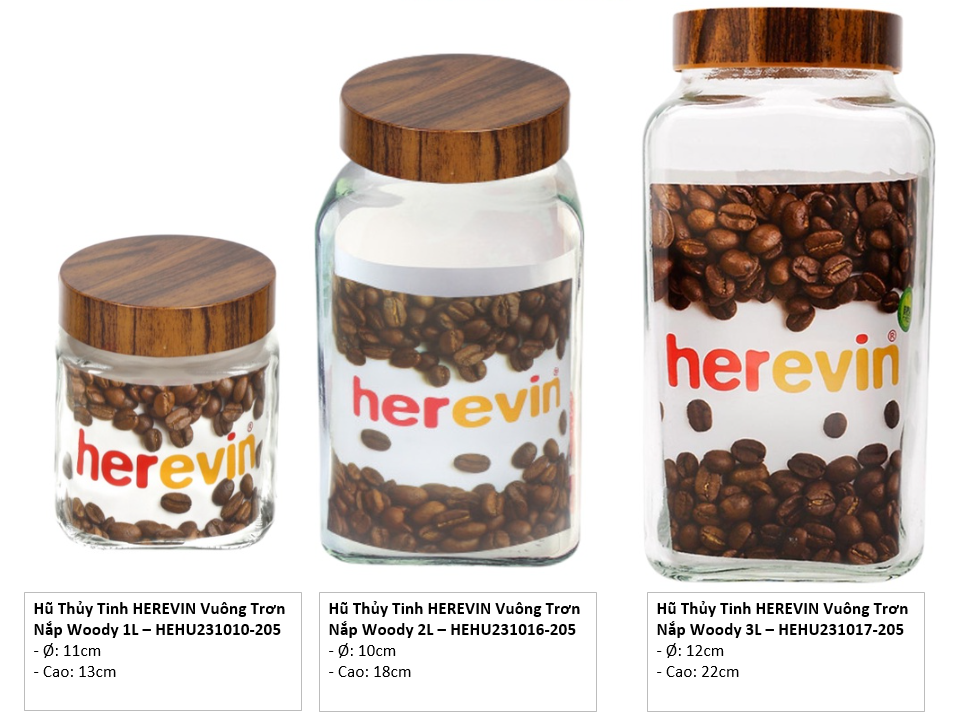 Hũ thủy tinh Herevin Woody, giúp chứa đựng được gia vị.