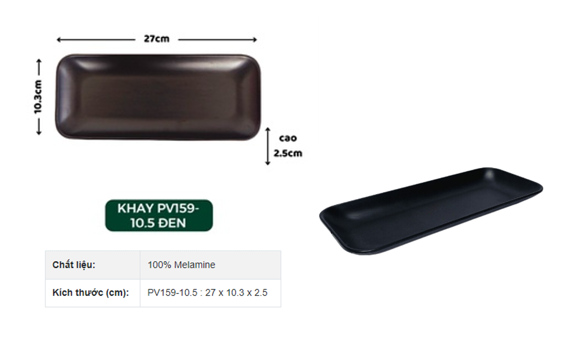 | PV159-10.5 B | Dài: 27cm - Rộng: 10.3cm - Cao: 2.5cm |