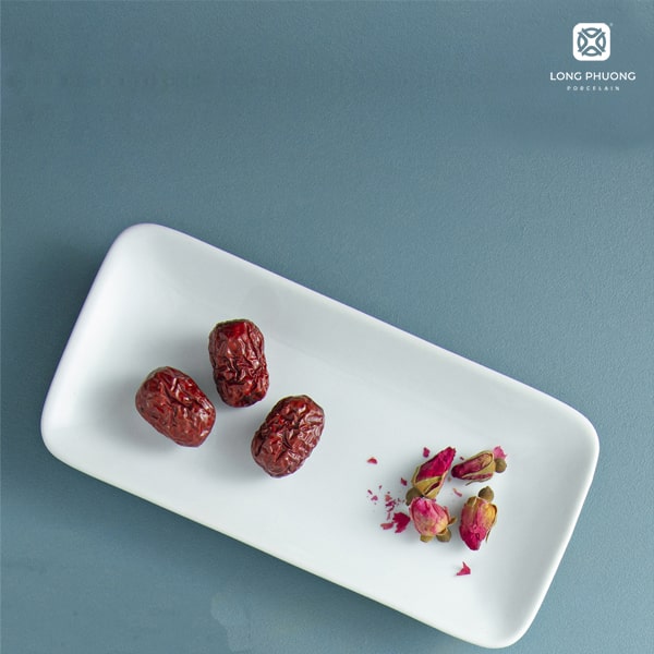Khay đựng gia vị hình chữ nhật bằng sứ trắng cao cấp Long Phương được sản xuất trên dây truyền công nghệ cao của Đức, các nguyên vật liệu được nhập được nhập từ nước ngoài, tạo nên chất sứ đanh bền, khó bể mẻ.