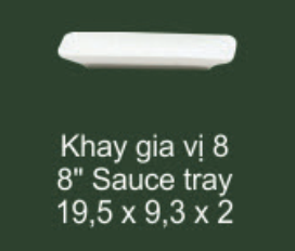 Đĩa chữ nhật đựng gia vị 8 Inch được thiết kế mới lạ, độc đáo với kiểu dáng đĩa chữ nhật sứ trắng cao cấp không họa tiết. Được dùng trong các nhà hàng sang trọng hoặc trên bàn ăn gia đình.