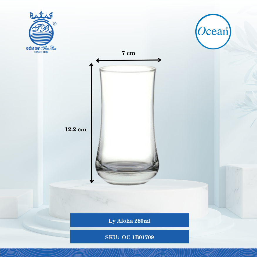 | OC 1B01709 | Ø: 7cm - ØĐáy: 4.7cm - ØMiệng: 6.3cm - 280ml - Cao: 12.2cm - 72 Cái/Thùng - 6 Cái/Hộp |