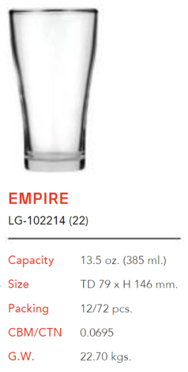 | LG 102214 22 | Ø: 7.9cm - 385ml - Cao: 14.6cm - 72 Cái/Thùng - 12 Cái/Hộp - 23Gr. |