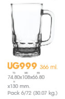| UG 999 | Ø: 10.8cm - ØĐáy: 6.6cm - 385ml - Cao: 13cm - 6 lố/Thùng - 6 c/Hộp - 29Gr. |