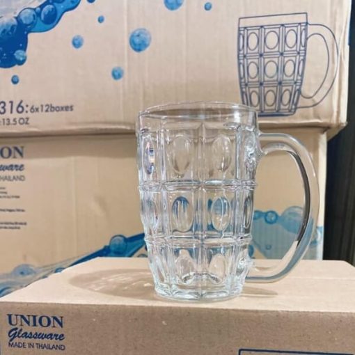 Ly có thiết kế dạng ly cao, quai cầm lớn mang lại cảm giác chắc chắn, không trơn trượt khi sử dụng. Bộ ly với đường kính lớn và phần thành có hoa văn hình khối đẹp mắt cùng độ sáng bóng ấn tượng, tạo sự hiện đại.