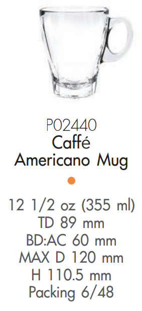 | OC 1P02440 | Ø: 12cm - ØĐáy: 6cm - ØMiệng: 8.9cm - 355ml - Cao: 11cm - 48 Cái/Thùng - 6 Cái/Hộp |