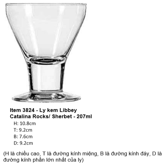 | LIB 3824 | ØĐáy: 7.6cm - ØMiệng: 9.2cm - 207ml - Cao: 10.8cm - 36Cái/Thùng |