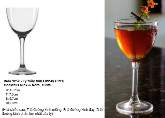 | LIB 9252 | ØĐáy: 6.7cm - ØMiệng: 7.6cm - 163ml - Cao: 15.2cm - 12Cái/Thùng |