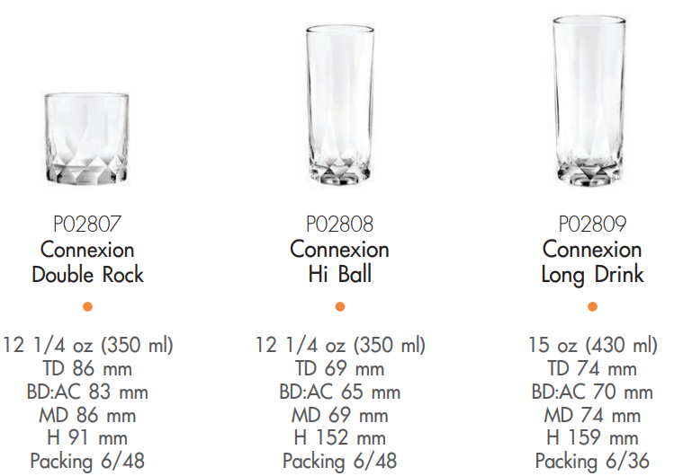 - Bộ sưu tập ly bar Connexion, sự kết hợp hoàn hảo giữa phong cách hiện đại với phong cách cổ điển. Thiết kế hiện đại, phong cách cổ điển tạo trải nghiệm bữa tiệc đặc biệt và thêm điều gì đó độc đáo và thú vị vào quầy bar, giúp thêm sự lấp lánh cho đồ uống của bạn vào ban đêm. Với hoa văn phong cách pha lê. Ngoài ra, đế kính rất dày. Giúp tăng thêm giá trị cho đồ uống. Tiện lợi khi sử dụng với kích thước ly được thiết kế phù hợp với tiêu chuẩn phục vụ từng loại đồ uống cùng với thiết kế thẳng đơn giản. Và những thành ly đủ dày để sử dụng trong các quán bar.