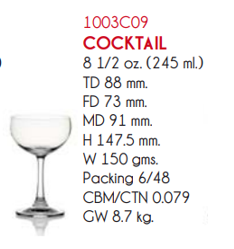 | OC 1003C09 | Ø: 9.1cm - ØĐáy: 7.3cm - ØMiệng: 8.8cm - 245ml - Cao: 14.75cm - 48 Cái/Thùng - 6 Cái/Hộp |