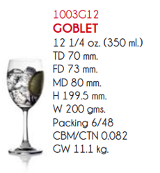 | OC 1003G12 | Ø: 8cm - ØĐáy: 7.3cm - ØMiệng: 7cm - 350ml - Cao: 19.95cm - 48 Cái/Thùng - 6 Cái/Hộp |