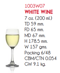 | OC 1003W07 | Ø: 6.7cm - ØĐáy: 6.5cm - ØMiệng: 5.9cm - 200ml - Cao: 17.85cm - 48 Cái/Thùng - 6 Cái/Hộp |