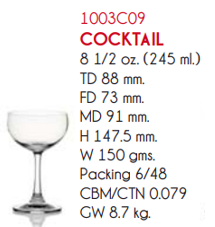 | OC 1503C09 | Ø: 9.1cm - ØĐáy: 7.3cm - ØMiệng: 8.8cm - 245ml - Cao: 14.75cm - 48 Cái/Thùng - 6 Cái/Hộp |