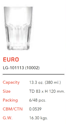 | LG 101113 10002 | Ø: 8.3cm - 380ml - Cao: 12cm - 48 Cái/Thùng - 6 Cái/Hộp - 16Gr. |