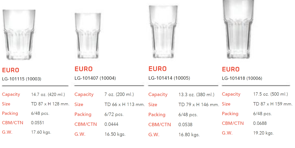 | LG 101414 10005 | Ø: 7.9cm - 380ml - Cao: 14.6cm - 48 Cái/Thùng - 6 Cái/Hộp - 17Gr. |