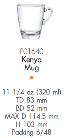 | OC 1P01640 | Ø: 11.45cm - ØĐáy: 5.2cm - ØMiệng: 8.3cm - 320ml - Cao: 10.3cm - 48 Cái/Thùng - 6 Cái/Hộp |