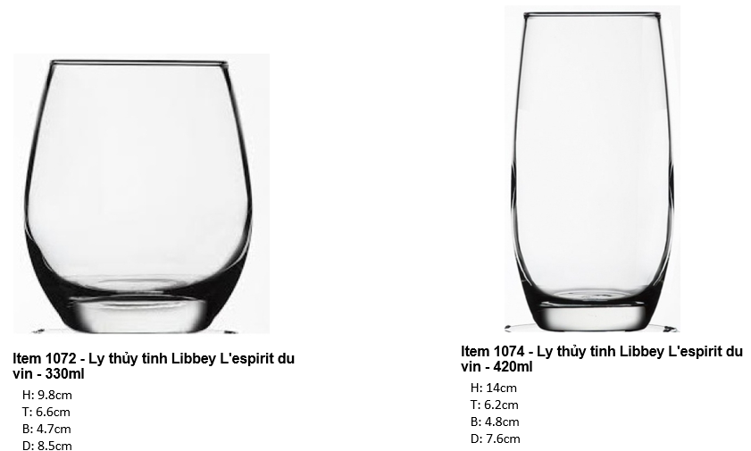 - Không khó khăn để nhận biết độ lớn của Libbey thông qua sự đa dạng về mẫu mã, về dung tích trong cùng một thiết kế. Libbey còn được biết đến về độ bền nổi trội, đóng góp đáng kể về mặt hiệu quả kinh tế cho các khách hàng khu vực khách sạn, nhà hàng, quán cafe.