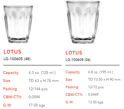 | LG 100608 06 | Ø: 7.3cm - 210ml - Cao: 9cm - 72 Cái/Thùng - 12 Cái/Hộp - 14Gr. |