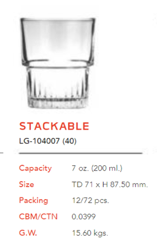 | LG 104007 40 | Ø: 7.1cm - 200ml - Cao: 8.7cm - 72 Cái/Thùng - 12 Cái/Hộp - 16Gr. |