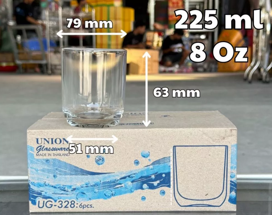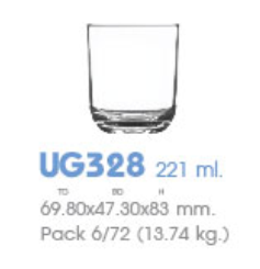 | UG 328 | Ø: 6.9cm - ØĐáy: 4.7cm - 225ml - Cao: 8.3cm - 6 lố/Thùng - 6 c/Hộp - 14Gr. |