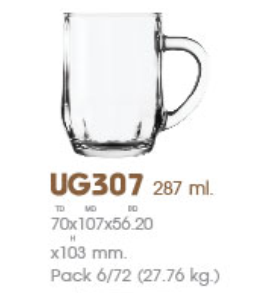 | UG 307 | Ø: 10.7cm - ØĐáy: 5.6cm - 300ml - Cao: 10.3cm - 6 lố/Thùng - 6 c/Hộp - 28Gr. |