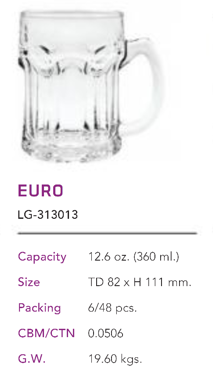 | LG 313013 | Ø: 8.2cm - 360ml - Cao: 11.1cm - 48 Cái/Thùng - 6 Cái/Hộp - 20Gr. |