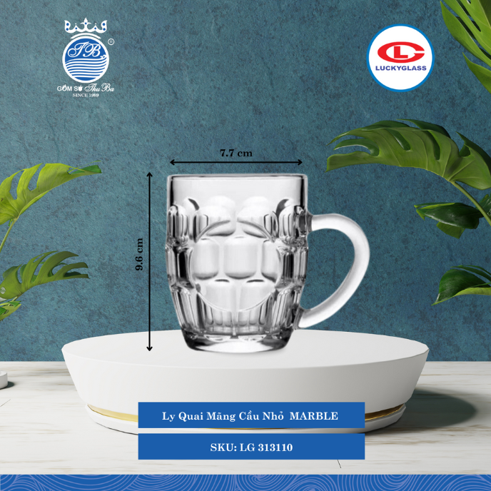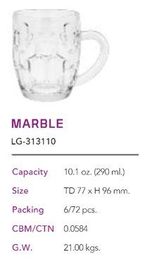 Ly Quai Mãng Cầu Nhỏ MARBLE Ø: 7.7cm 290ml Cao: 9.6cm 72 Cái/Thùng 6 Cái/Hộp 21Gr. Lucky Glass Thủy Tinh TL Glass Cup LG 313110