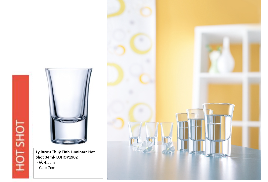 Bộ 12 Ly Rượu Thuỷ Tinh Luminarc Hot Shot 34ml- LUHOP1902.