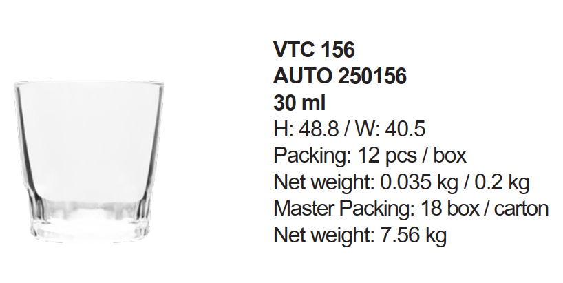 | VTC 156 | Ø: 4.05cm - 30ml - Cao: 4.88cm - 216 Cái/Thùng - 12 Cái/Hộp |