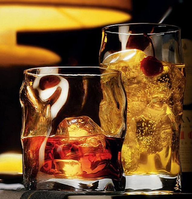 Thân ly thủy tinh với các đường uốn lượn độc đáo làm nổi bật thức uống bên trong, đồng thời giúp cầm rất chắc tay.