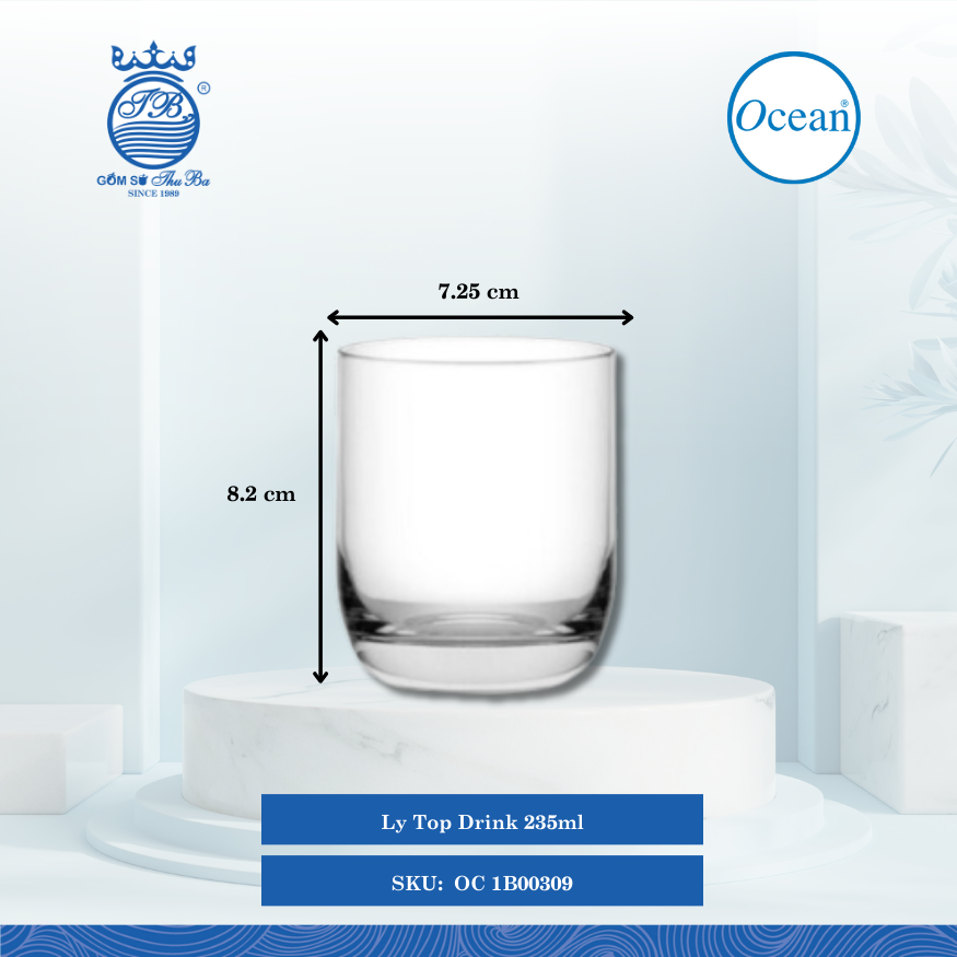 | OC 1B00309 | Ø: 7.25cm - ØĐáy: 5.2cm - ØMiệng: 7.1cm - 235ml - Cao: 8.2cm - 72 Cái/Thùng - 6 Cái/Hộp |
