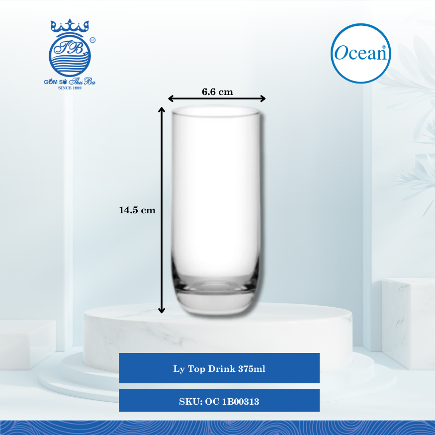 | OC 1B00313 | Ø: 6.6cm - ØĐáy: 4.8cm - ØMiệng: 6.4cm - 375ml - Cao: 14.5cm - 72 Cái/Thùng - 6 Cái/Hộp |