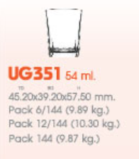 | UG 351 | Ø: 4.5cm - ØĐáy: 3.9cm - 55ml - Cao: 5.7cm - 12 lố/Thùng - 6 c/Hộp - 9Gr. |