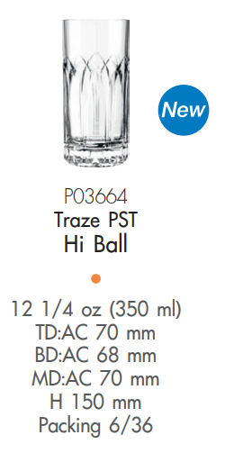 TRAZE thiết kế ly, cắt, sang trọng, cổ điển, theo ý tưởng "Mọi khoảnh khắc đều ấn tượng". Có ba thiết kế cắt theo ba phong cách hoàn hảo. Lấy cảm hứng từ dấu vết của nghệ thuật, đẹp từ mỗi thời kỳ, mỗi thời đại