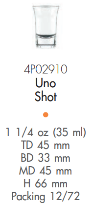 | OC 4P02910 | Ø: 4.5cm - ØĐáy: 3.3cm - ØMiệng: 4.5cm - 35ml - Cao: 6.6cm - 72 Cái/Thùng - 12 Cái/Hộp |